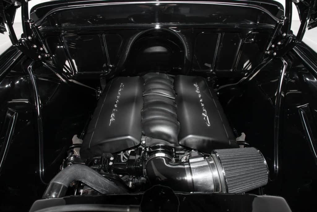 The focus shifted to flow efficiency, resulting in the use of rectangle-port heads and an all-new intake manifold. Then, factor in a new piston design, and injectors borrowed from the brutal LS7, and you get a very potent track weapon that happily doubles as an everyday commuter. However, at the top of the block, a black, chrome-trimmed air cleaner funnels wind into a factory throttle body. The air cleaner’s attached to a composite intake.