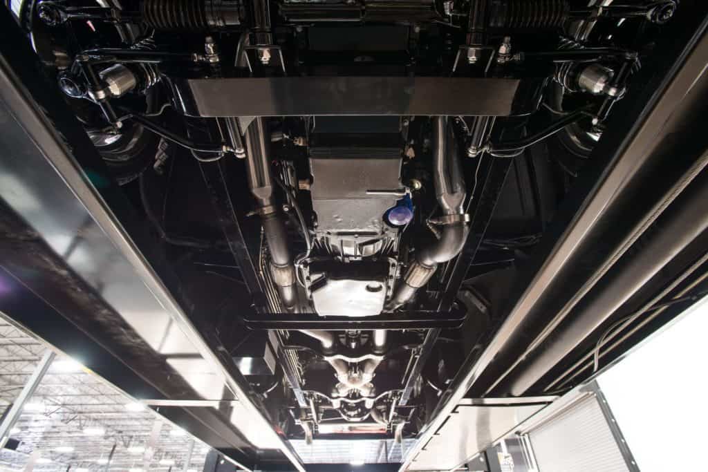 At the corners of the floor, stylish Billet Specialties Stilettos throw torque through 235/40ZR18 and 275/40ZR20 Toyo Proxes4s. Furthermore, from the truck’s braided fluid lines to its painted stainless fuel tank. Well-planned, well-executed, and ready to reflect!