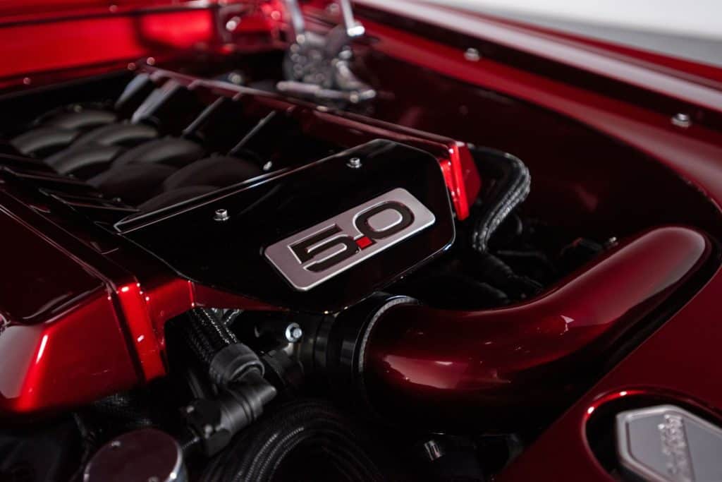 Lund Racing upgraded this 1969 Ford Mustang Restomod’s five-liter Coyote engine to 500 horsepower. Custom Cold Air Induction feeds an Aeromotive return-style fuel system that can produce 1,000 hp. The sides of the engine of long-tube Mustangs To Fear headers optimize breathing.