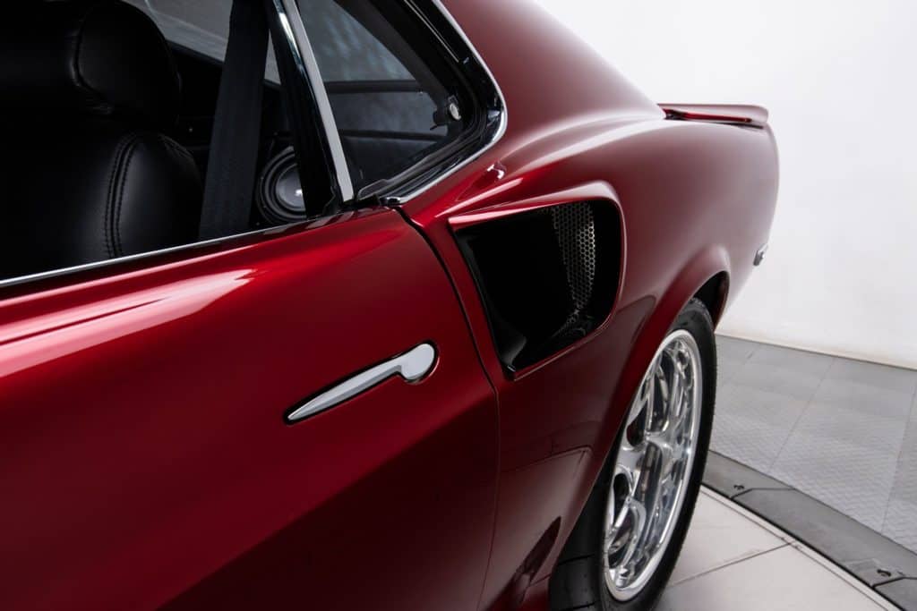 This Dynamite 1969 Ford Mustang Restomod is a six-figure, ground-up construction with unique changes. Moerover, it combines robust sheet metal with aggressive details to cross the line between historical muscle cars and modern sports vehicles. Instead of donning traditional, non-metallic paint, the car features rich PAINTHOUSE Randy Apple Red III 2-stage that’s incredibly dynamic.