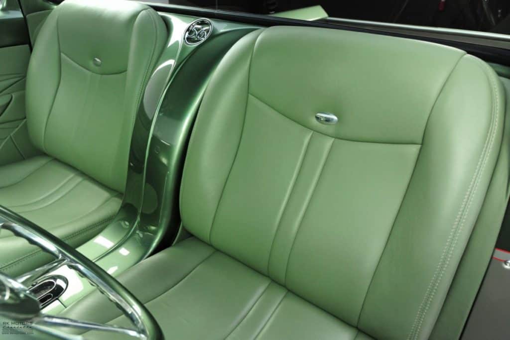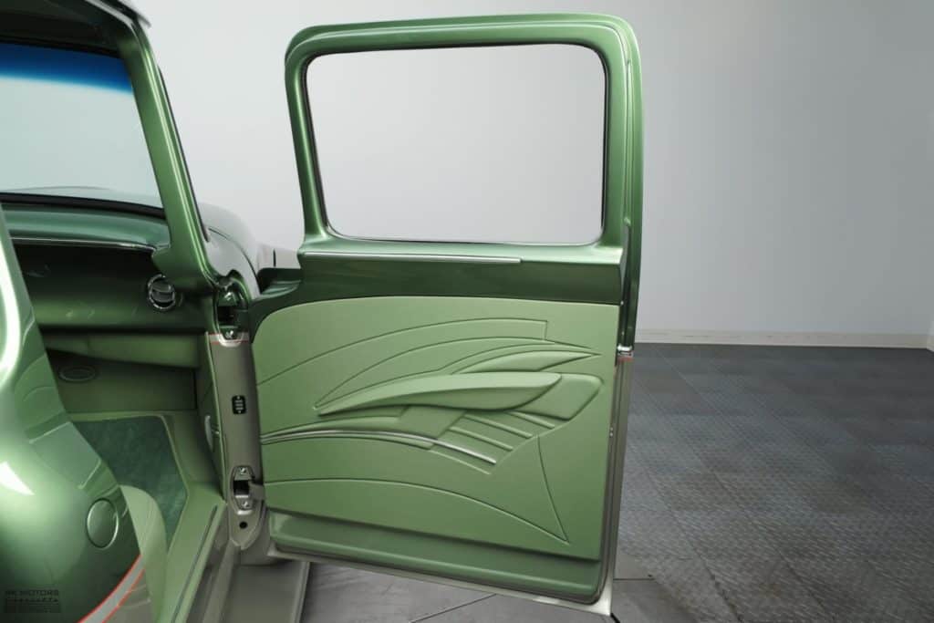The color is a timeless two-tone green. This vehicle will still look gorgeous in 30 years, thanks to the builder’s taste and talent. The red pinstripe that separates the two hues flows back into a painted sweep-spear that perfectly bisects the bodywork.